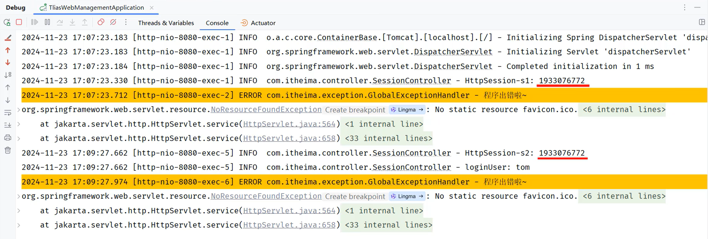 那经过这两步测试,大家也会看到,在控制台中输出如下日志: