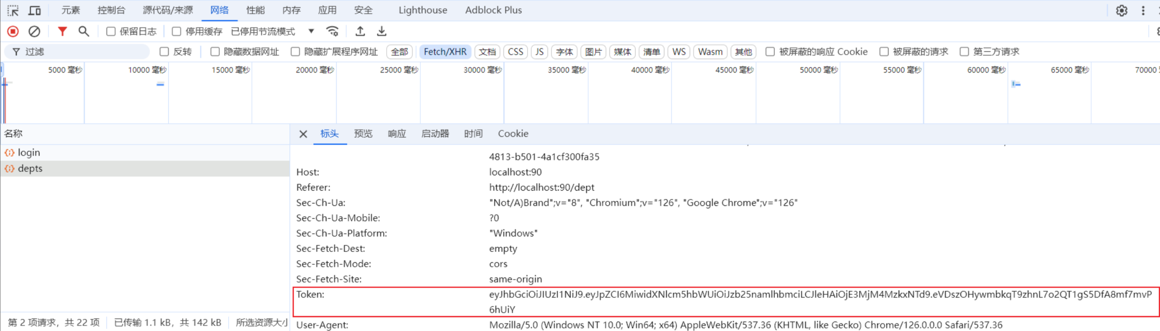 第2次:访问的是部门管理接口,查询所有部门数据