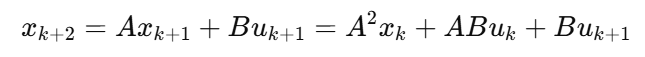 [ A B B 0 0 ] → u_k 影响 x_{k+2},u_{k+1} 也影响 x_{k+2}
