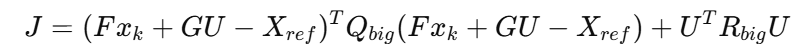 最终通过 二次规划(QP)求解器 求出一整串最优控制量序列 U*。