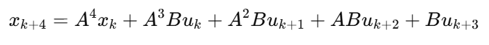 [ A^3 B A^2 B A B B ] → 四个控制依次累积影响 x_{k+4}