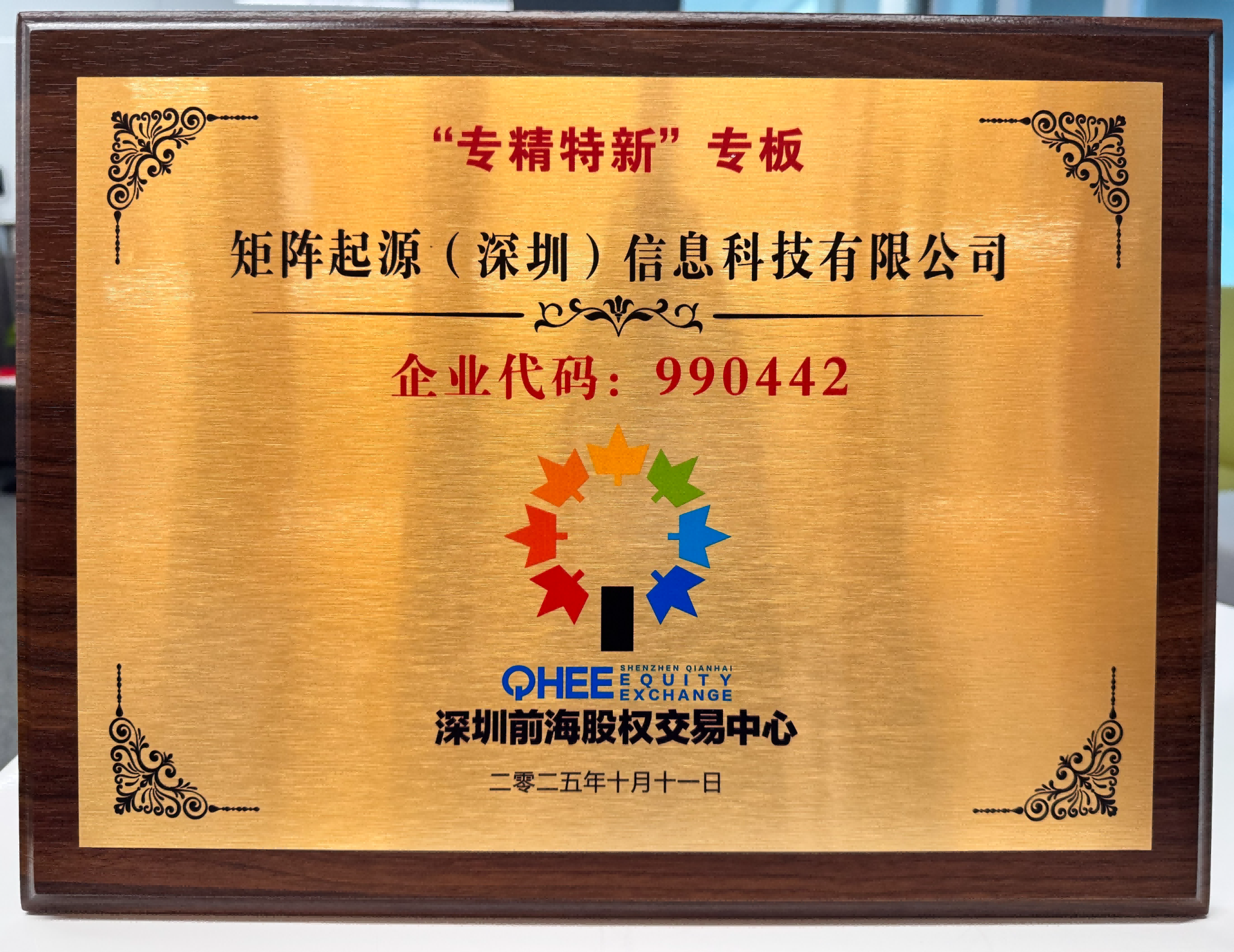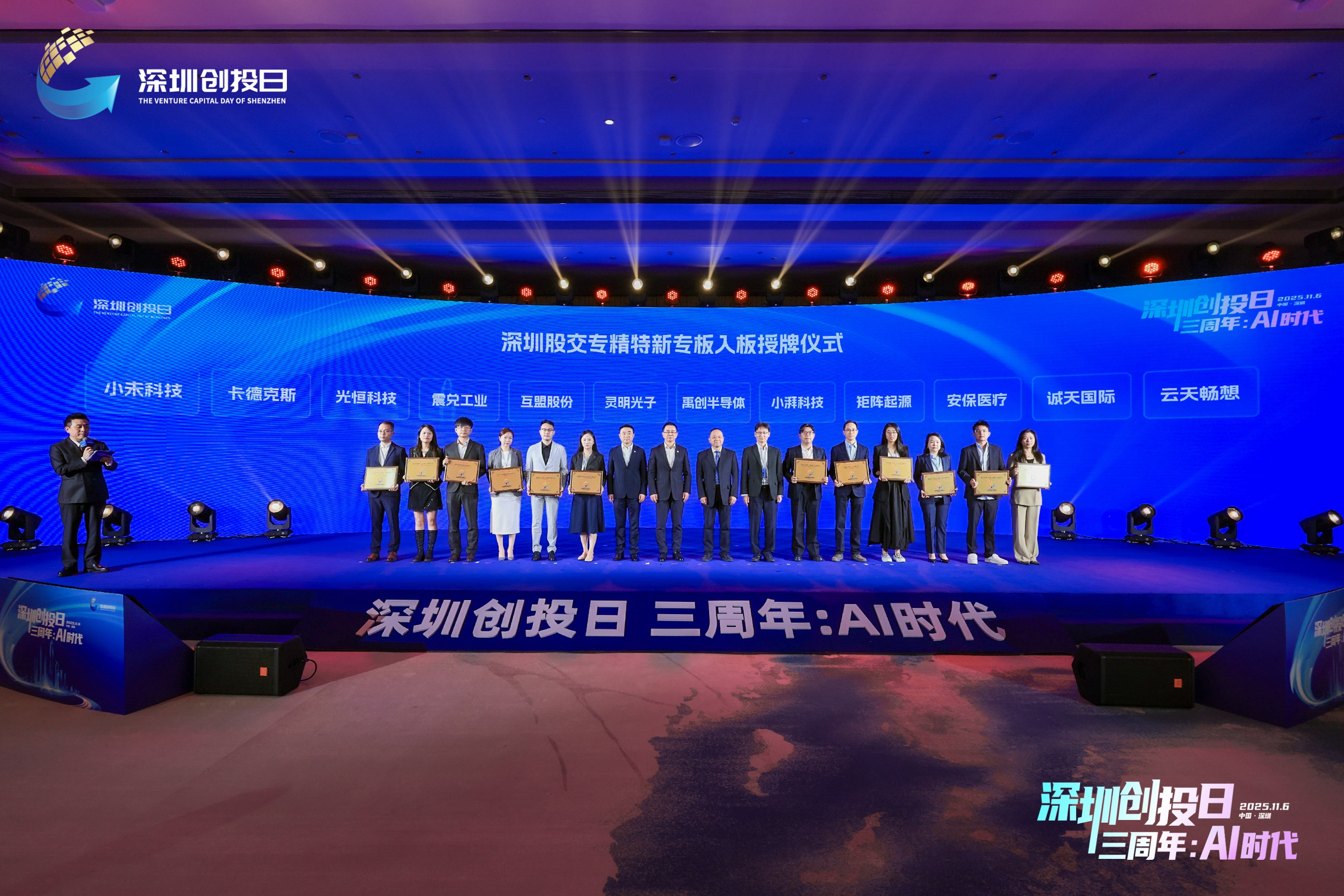 11月6日,在"深圳创投日三周年:AI 时代"主题活动上,矩阵起源(深圳)信息科技有限公司作为"专精特新"专板入板企业亮相,并登台接受授牌。