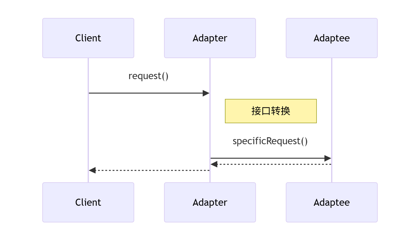 下面的序列图展示了客户端通过适配器调用方法的典型交互流程