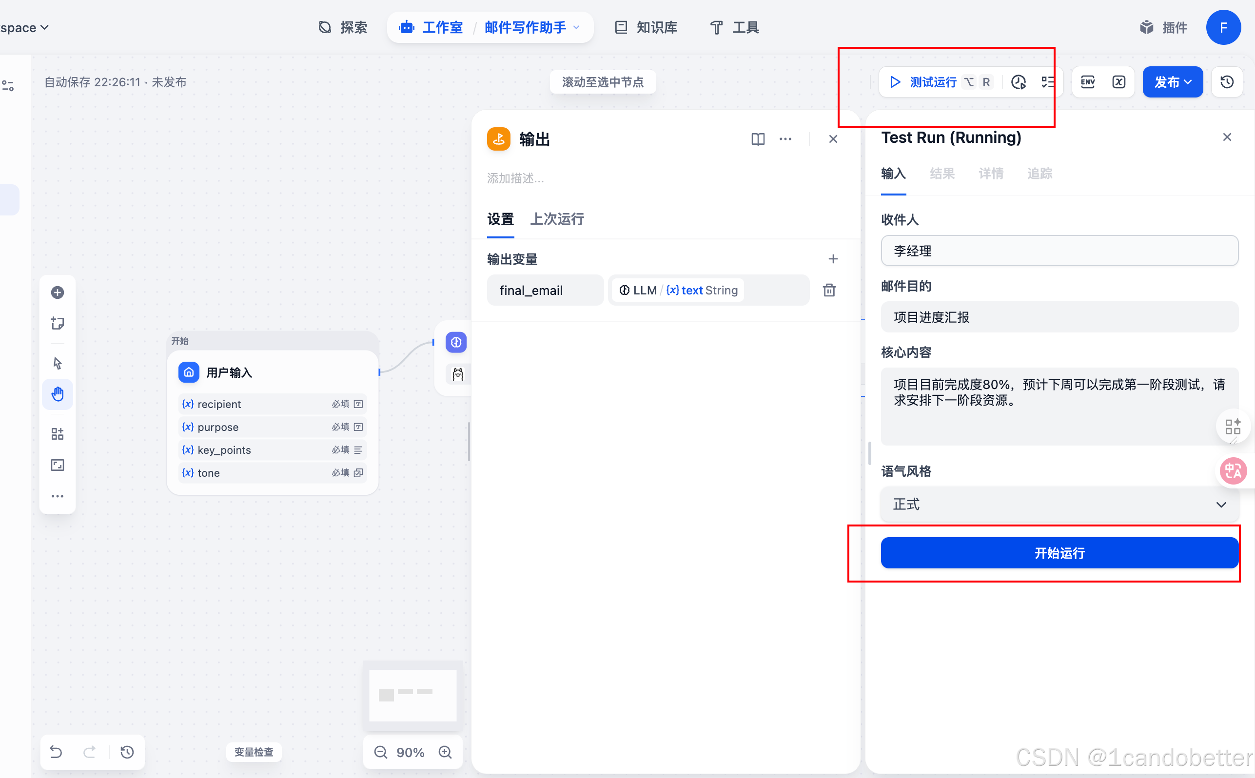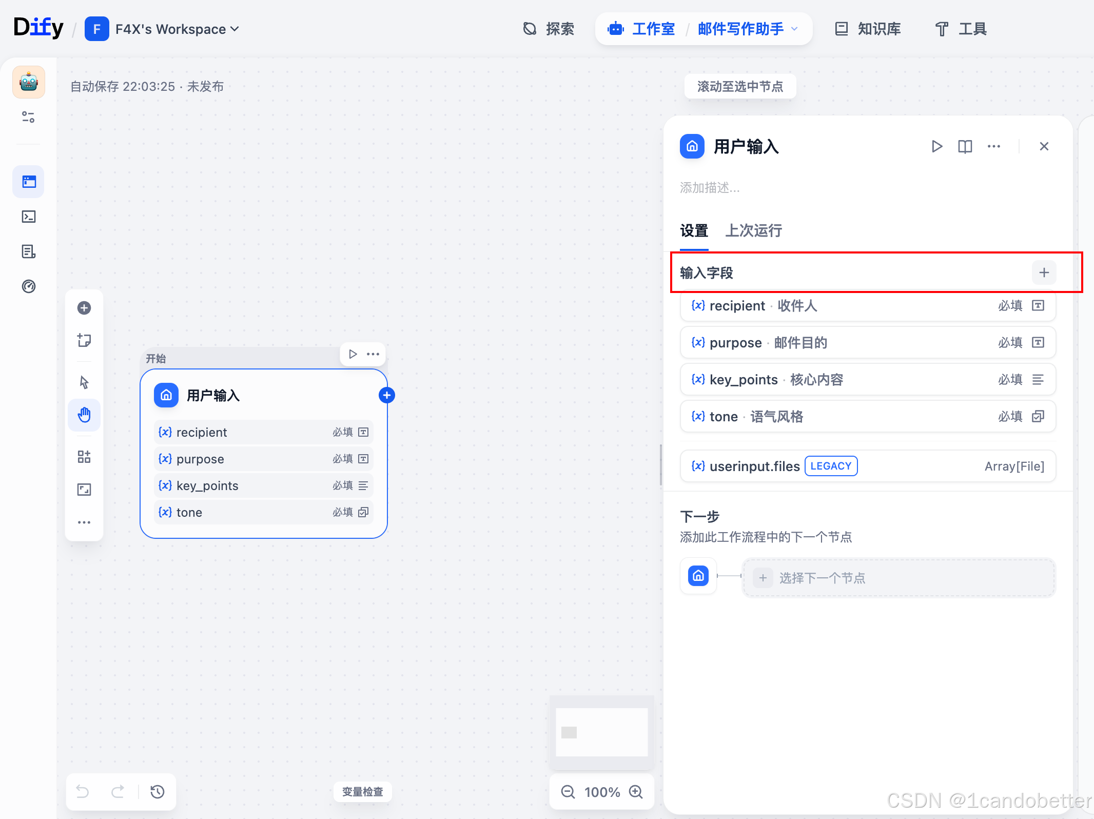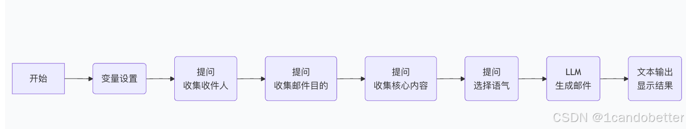 我们将构建一个包含以下节点的工作流,其结构清晰,能够逐步收集信息并生成邮件: