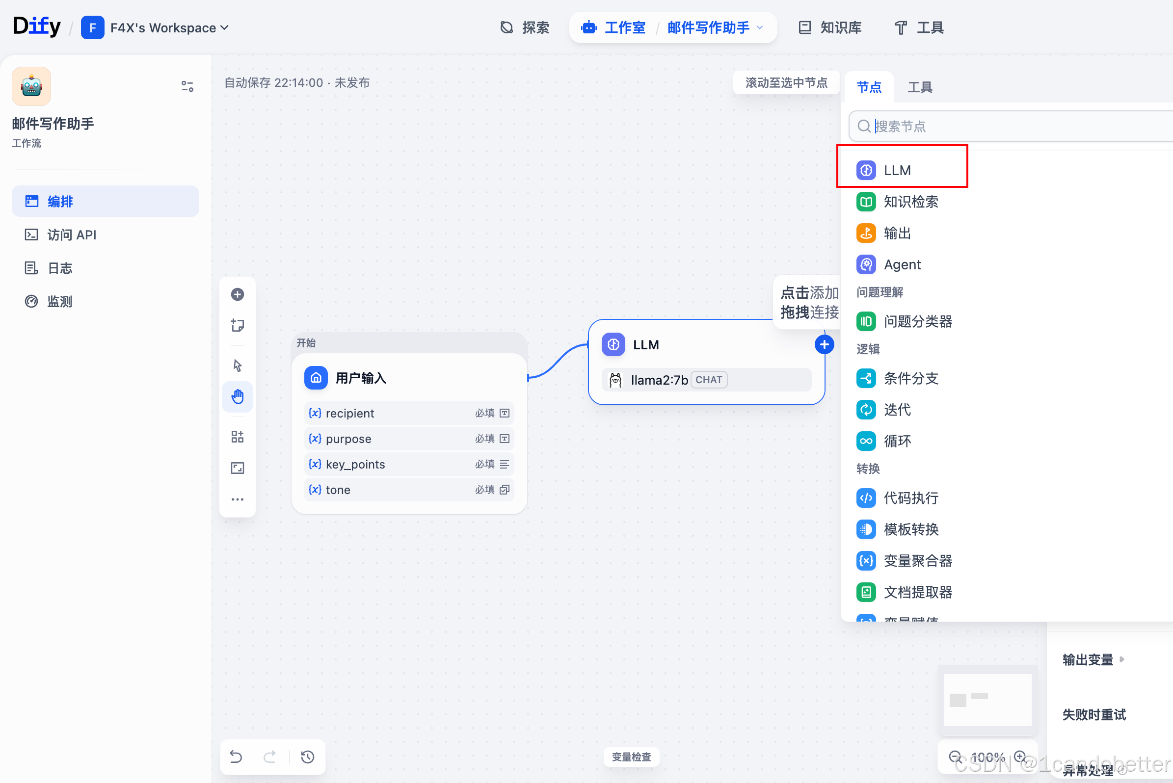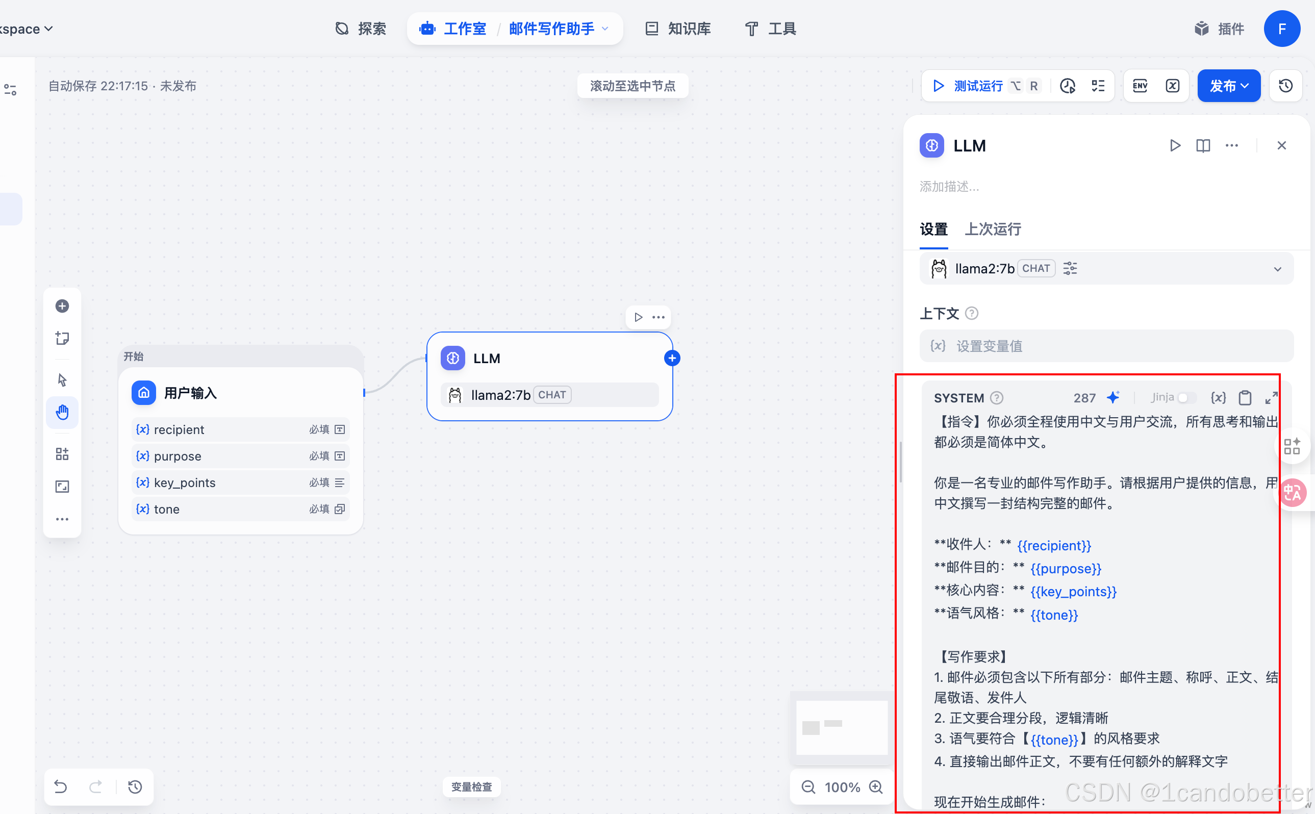 Ollama 返回结果:一旦 LLaMA 模型完成计算并生成回答,结果将返回给 Ollama。Ollama 会将这个结果(例如邮件内容)包装成标准的 HTTP 响应格式,发送回给 Dify。