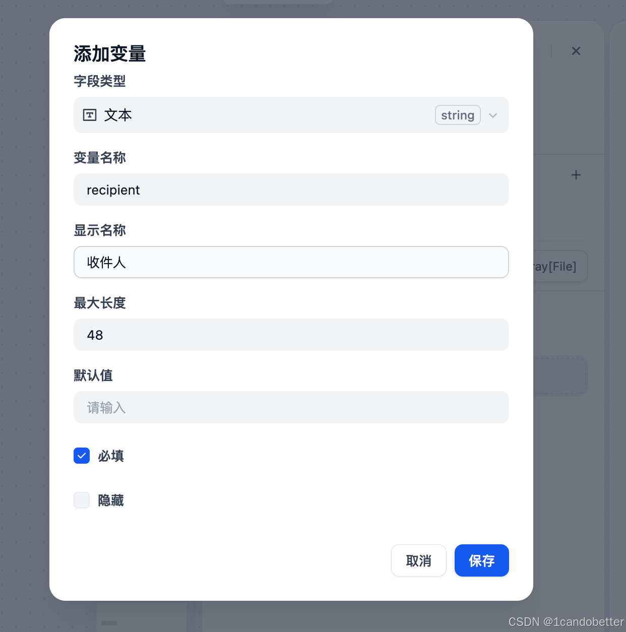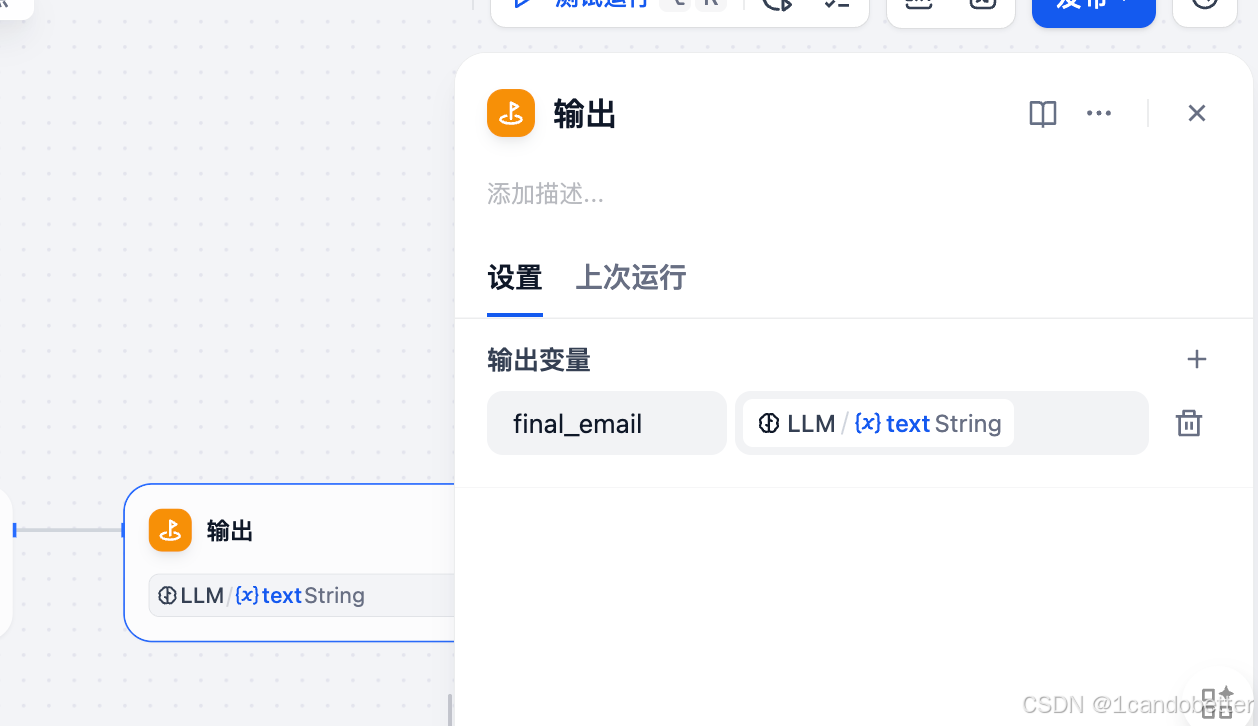 在 “输出变量” 区域,点击 “添加变量”,填写变量信息