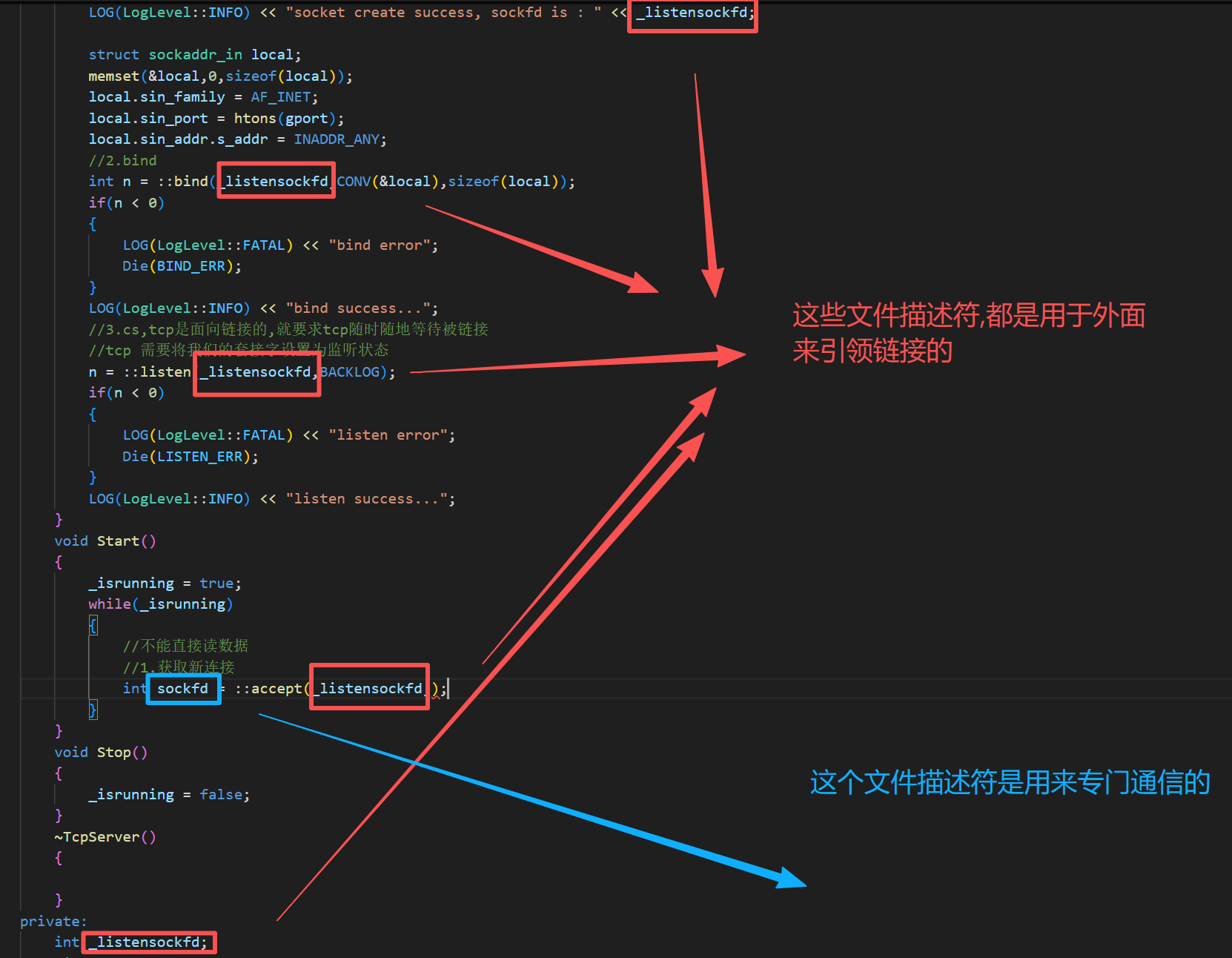 private:int _listensockfd;uint16_t _port;bool _isrunning;