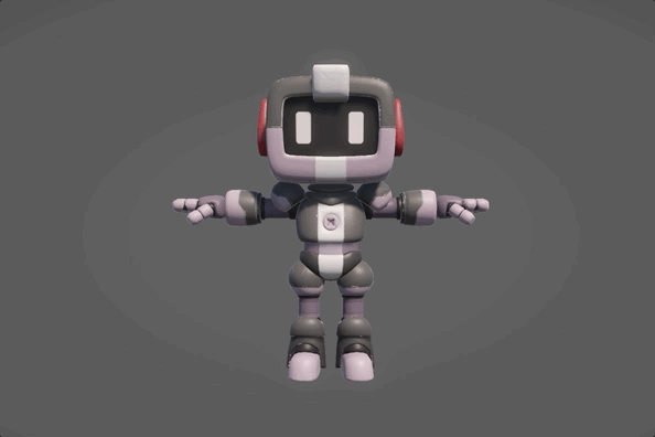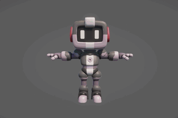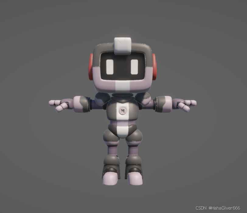 分别给身体和眼睛的材质球加一个贴图,并把对应的材质球给到机器人的模型上即可获得如下效果。