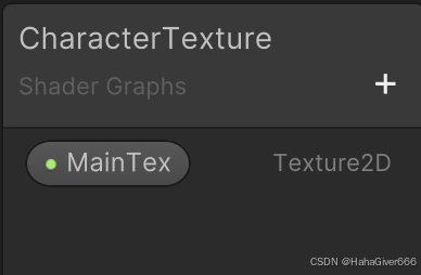 创建一个Texture 2D的变量,用来从外部传入贴图数据供Shader Graph使用,将其命名为MainTex。