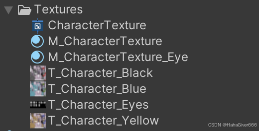 对应创建两个材质球,一个命名为M_CharacterTexture,另一个命名为M_CharacterTexture_Eye。因为我们用到的测试模型有身体和眼睛两部分,因此需要分别创建两个材质球。