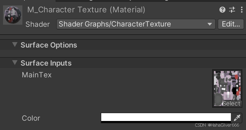 在Project视图里点击鼠标右键,选择Shader Graph/URP/Lit Shader Graph,创建第一个Shader Graph文件,命名为CharacterTexture。
