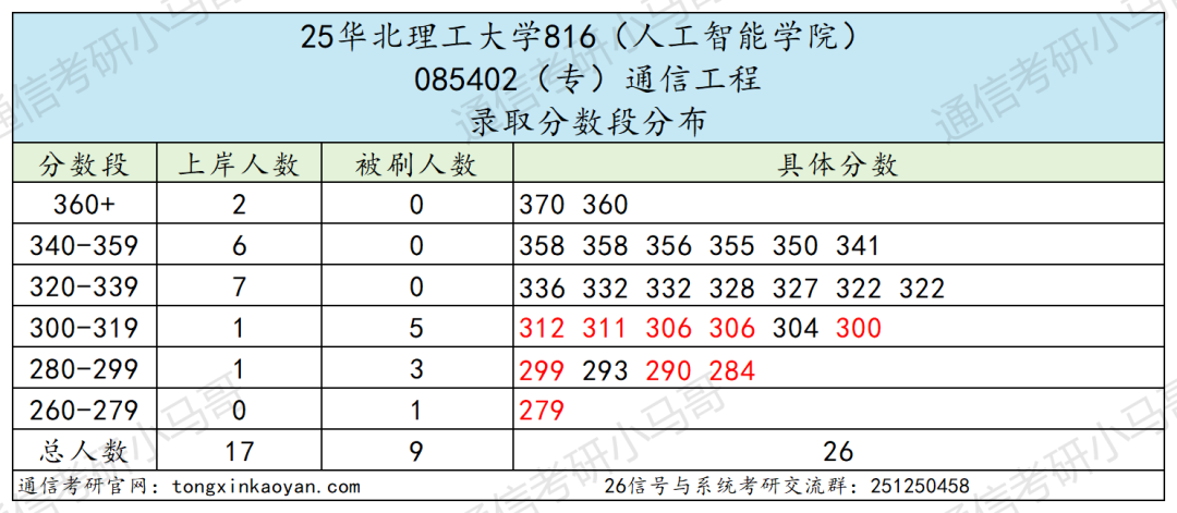 (5)280-299共4人,上岸1人,被刷3人;上岸率:25%