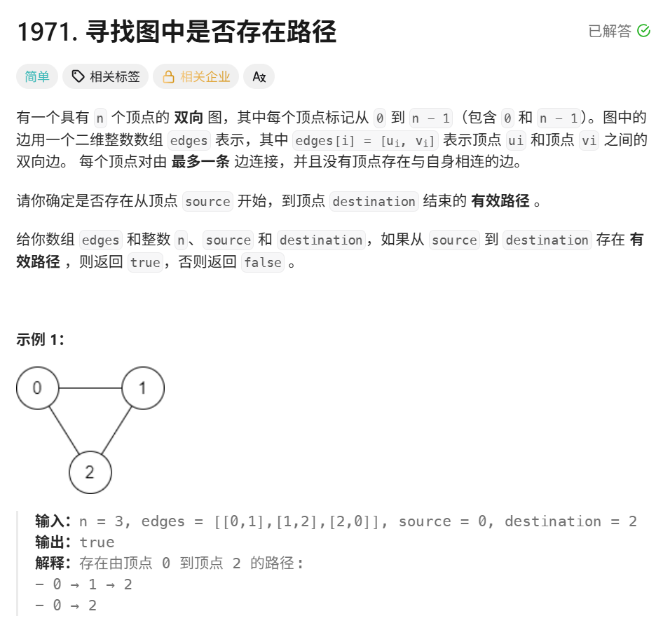 力扣 1971. 寻找图中是否存在路径