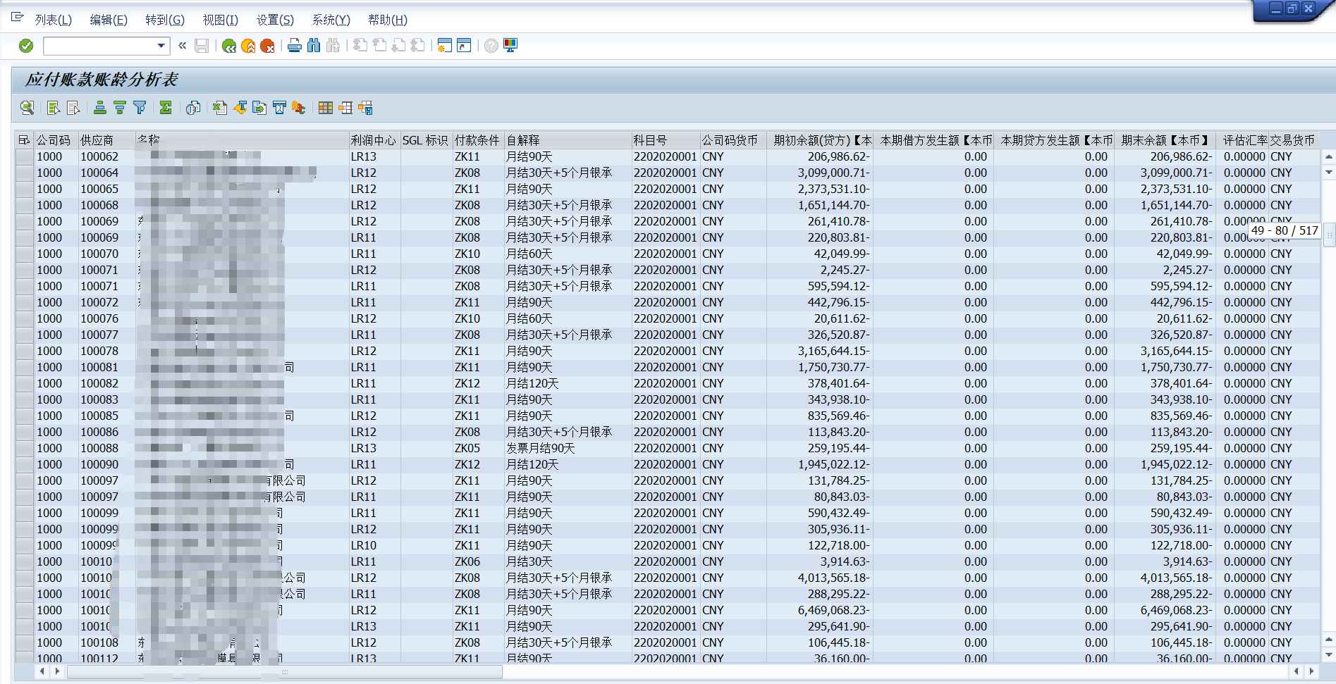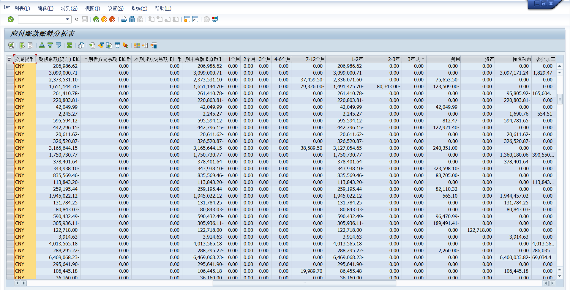 SAP FICO应付账款账龄分析表