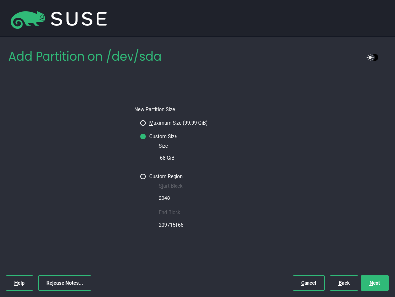 - 我演示下有swap的情况,我给根目录68G,剩余的给swap分区