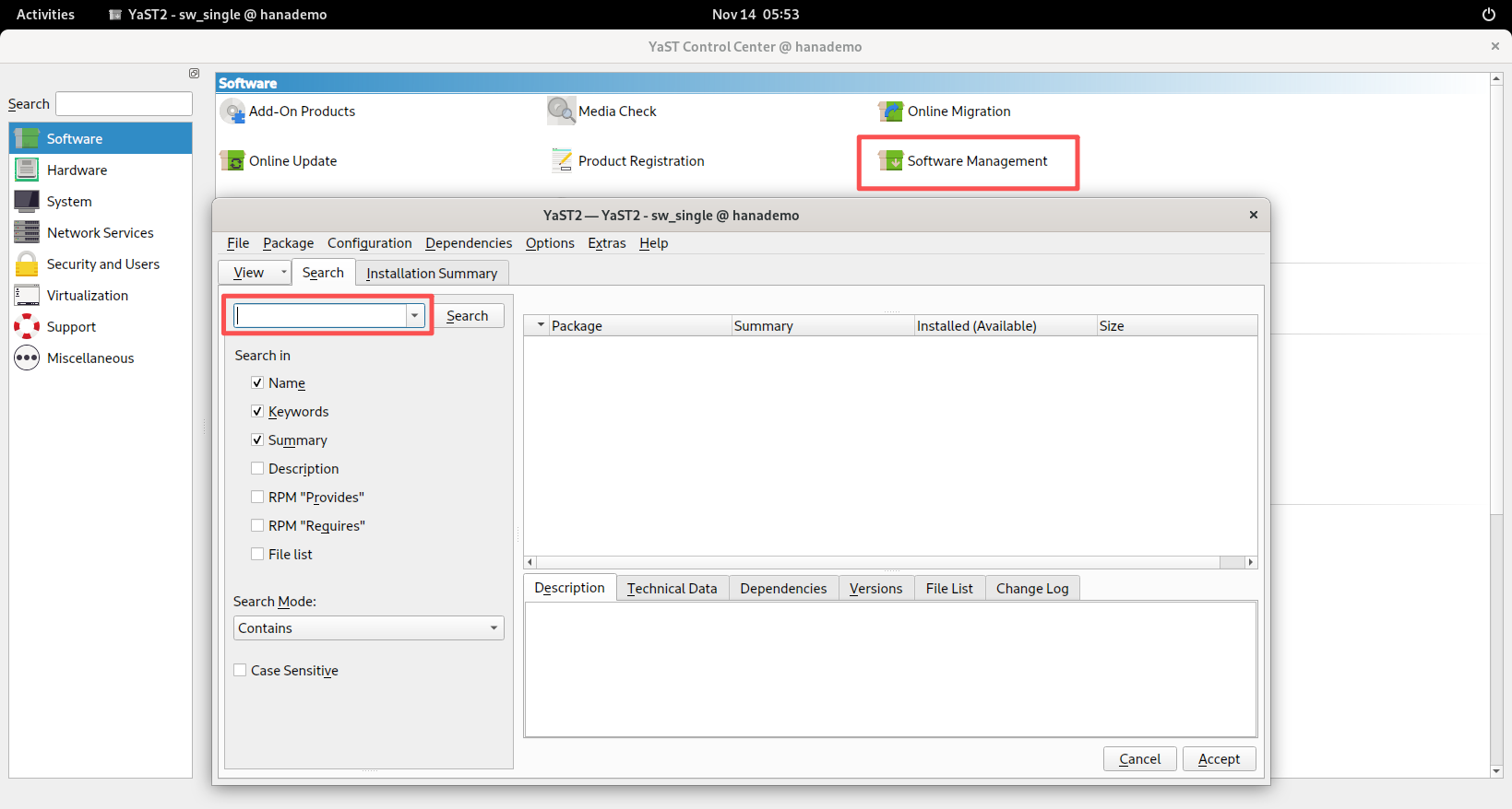 - 在这里搜索需要安装的rpm,然后进行安装即可,具体需要安装的包,参考管理员手册的服务器组件安装的前提条件库列表 | SAP Help Portal