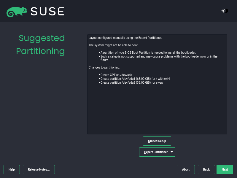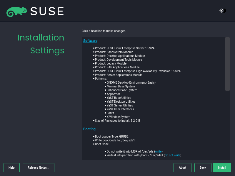 - 至此SUSE Linux Enterprise Server 15 SP4的安装步骤基本结束,后续可以再进行分区之类的,安装SAP HANA和SAP Business one