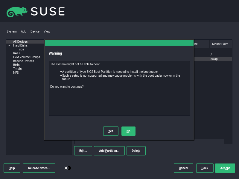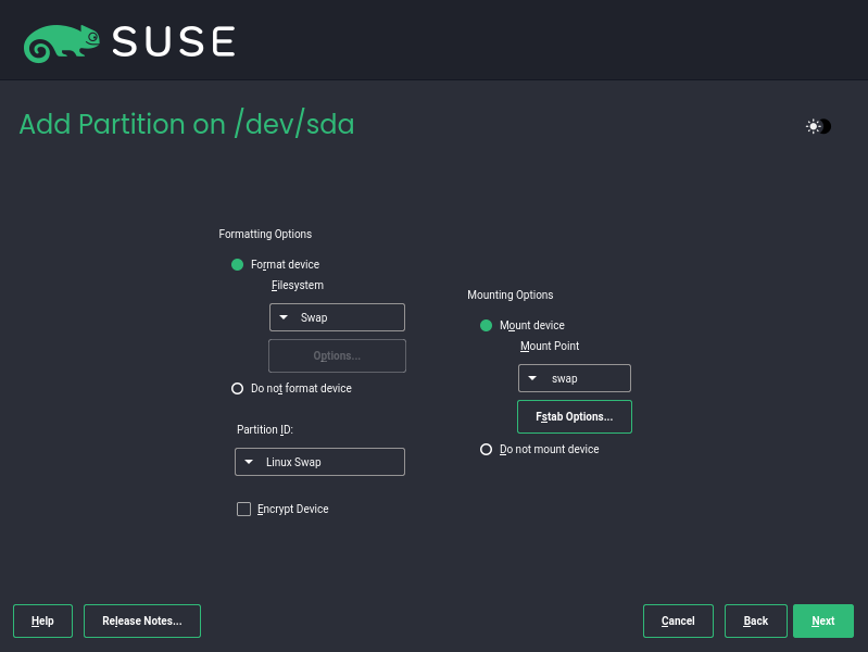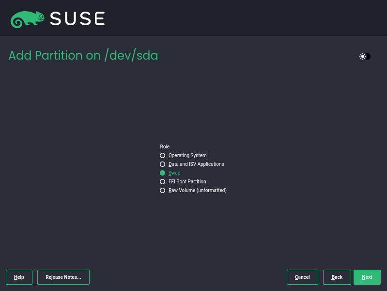- 然后分配swap分区,继续点击Add Partition