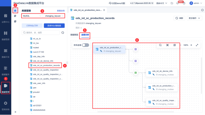 - 采集技术元数据:自动采集表的名称、字段、类型、血缘关系等信息。