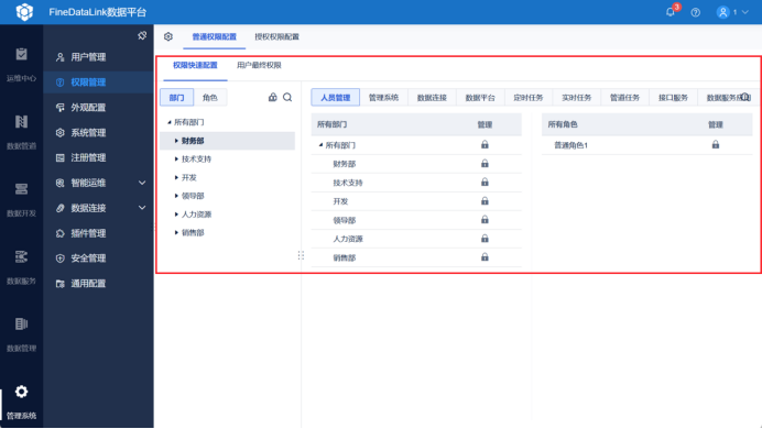 - 权限分级:基于“最小权限原则”分配访问权限。可以按数据主题、按行、按列进行精细化的权限控制。