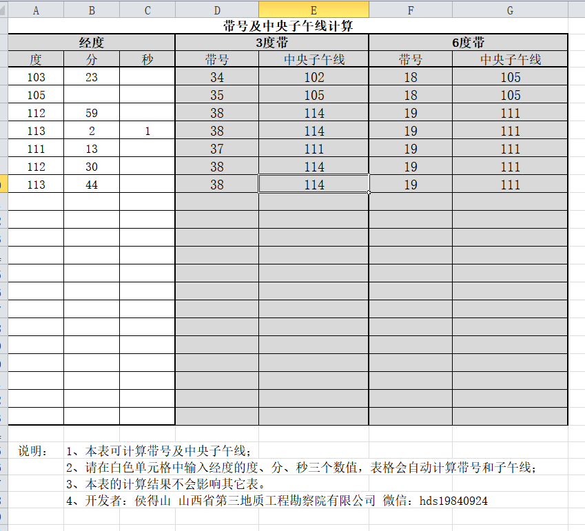 计算中央子午线(Excel版)