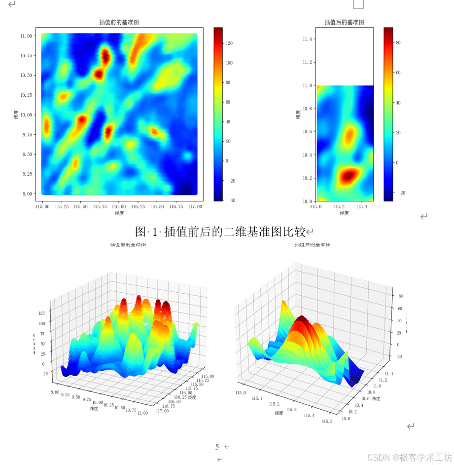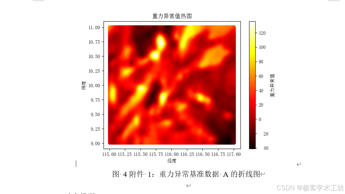 在问题1中,研究首先对附件一中的数据进行插值处理,以增加数据点的数量,并提高数据的空间分辨率,这有助于更精确地捕捉地下重力异常的变化情况。插值后的数据可视化展示了更精细的地形图。