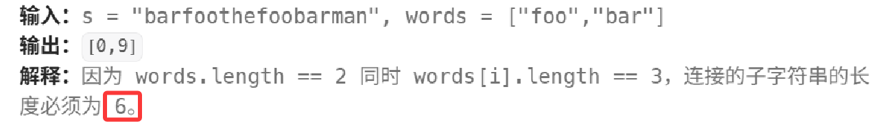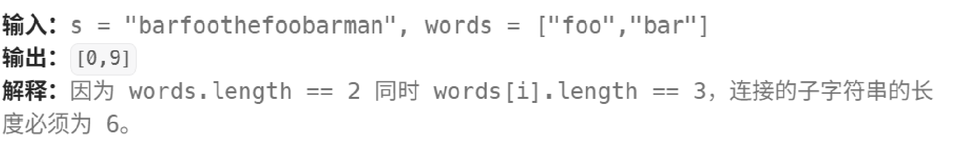 看下面的例子就能理解了,大致意思就是你在s中要找words中所有字符串的排列组合,返回下标。