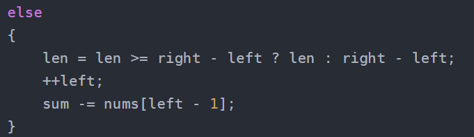 其实可以直接返回,判断的逻辑就是判断这个区间内所有值和是否大于等于target,不断更新len变量;