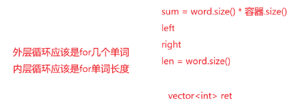 一想也想到了,等到啥时候遍历到的单词跟words里的单词一样的时候,right - sum其实是本次遍历的起始位置,这个时候,把
