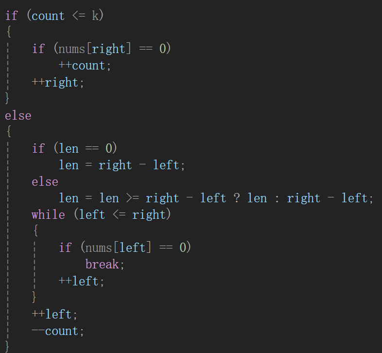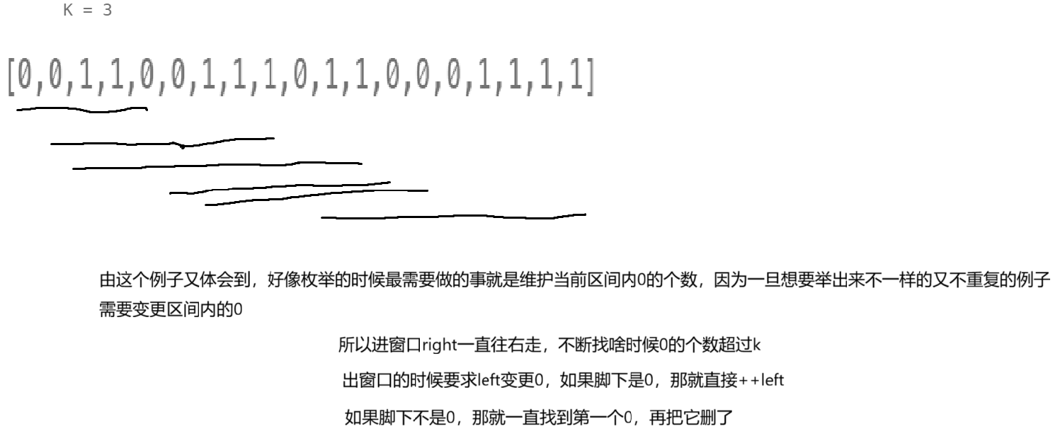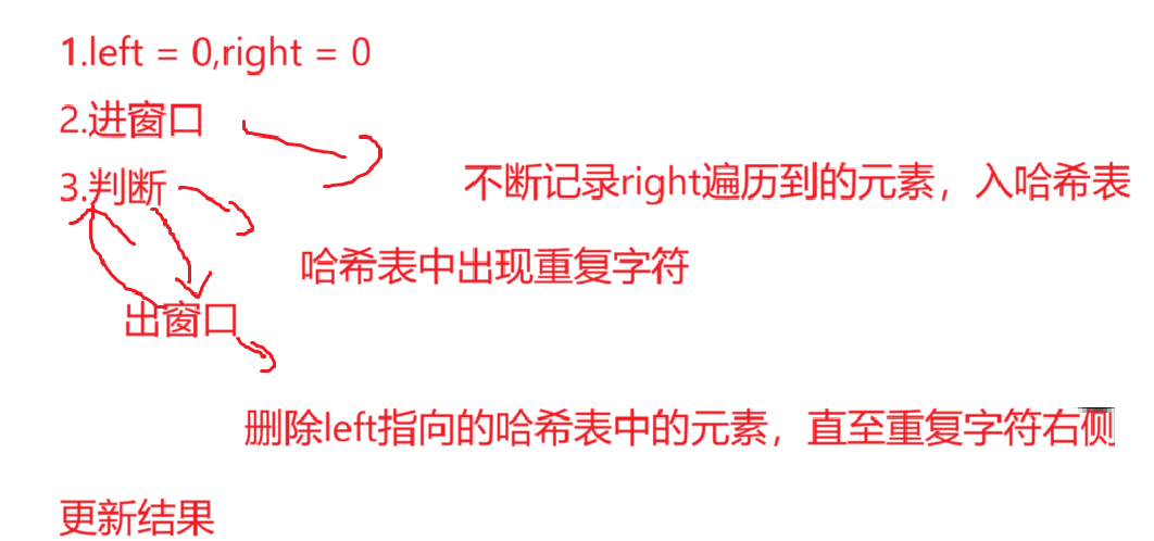 并且可以发现一个小那啥吧,省事的,就是从上图第一个举例到第二个举例,实际上是在哈希表里去掉当前left所指向元素,++left和++right,入哈希表,这样的话不用每次更新left都得重新搞right,只要维护好区间长度就可以。
