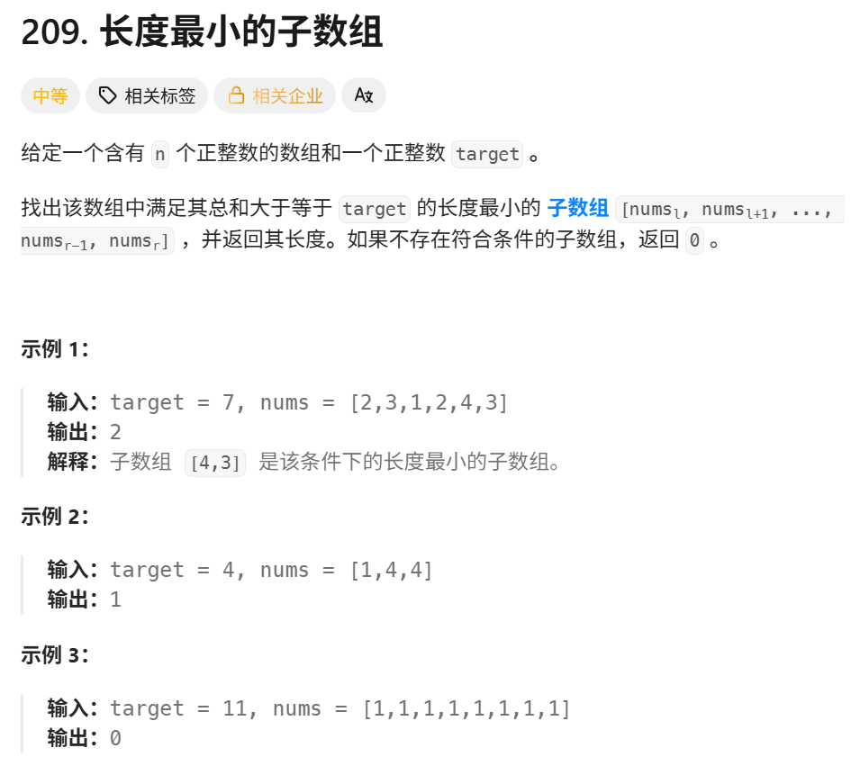 209. 长度最小的子数组 - 力扣(LeetCode)
