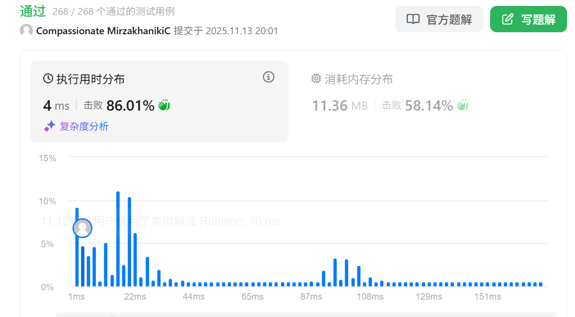 其实我老没招了,他为了让我意识到,确实我没考虑到极端情况,在题目里根本只口不提任何如果,根本不存在返回啥,我就蒙一蒙返回了一个匿名vector,然后通过了,说不清楚还有这边界,太抽象了。