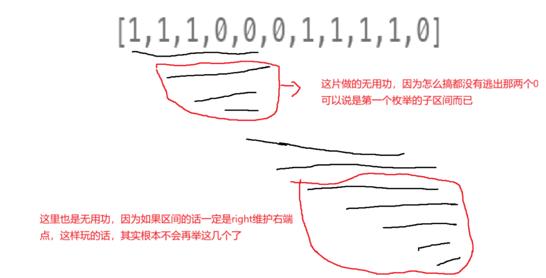 在此次定left,移动right的结果下,再往后遍历的子数组的长度肯定要大于第一次找到的子数组的长度。