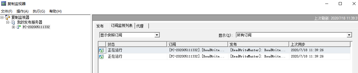 补充:右键启动复制监视器,查看发布订阅的同步情况