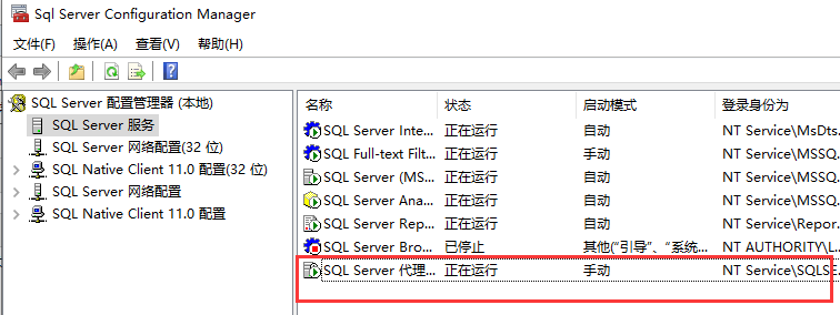 A. 在服务中启动:运行services.msc,找到 ‘SQL Server 代理 (MSSQLSERVER)’,手动启动。