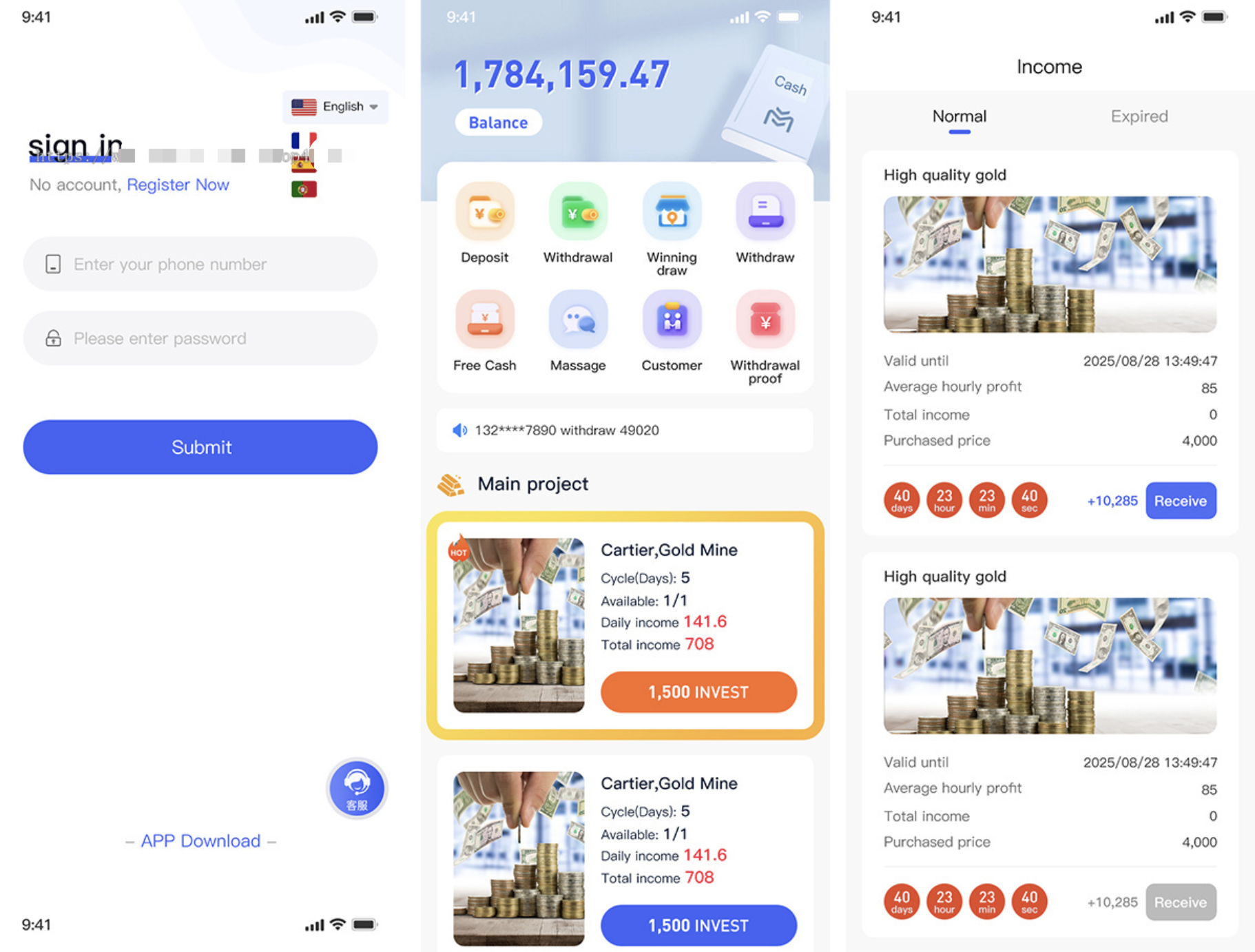 系统核心的理财功能通过"金矿项目"实现,技术特点包括: