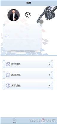玩家,在我的页面可以对游戏道具,战绩信息,水平评估等详细信息进行操作,如图5-4所示。