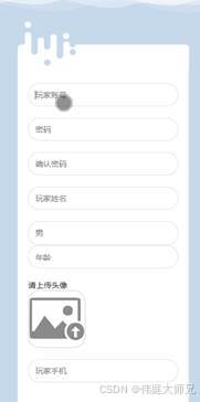 注册玩家,进入玩家注册页面,通过填写玩家账号,密码,确认密码,玩家姓名,性别,年龄,头像,玩家手机等信息进行注册操作,如图5-2所示。