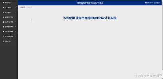 管理员登录系统后,可以查看系统首页,个人中心,玩家管理,游戏分类管理,道具种类管理,游戏道具管理,战绩信息管理,水平评估管理,系统管理等功能,还能对每个功能逐一进行相应操作,如图5-6所示。