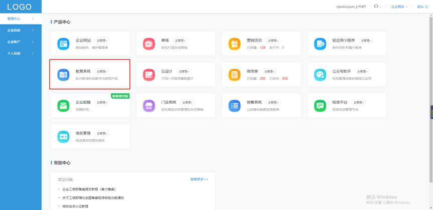 进入乔拓云网,注册并登录账号,然后点击【教育系统】进入后台管理页面。