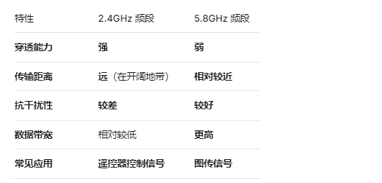 无人机遥控主要使用这两个公共频段,它们各有优劣,适用于不同场景。