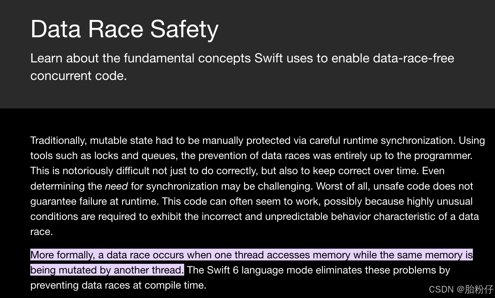 关于 data races 的产生原因, Swift 的官方文档是这样解释的: