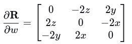 带入即可算出相应雅可比,此处只列出w分量的雅可比,其它的类似