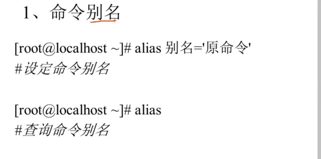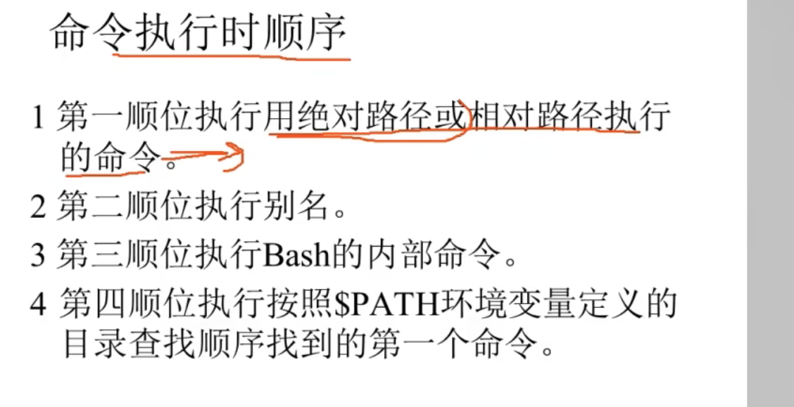 第三个就是bash自己的命令,比如cd这种,是bash这个命令自己的子命令。那么如果我给一个命令起一个别名叫做cd,那么实际上执行的是那个别名。