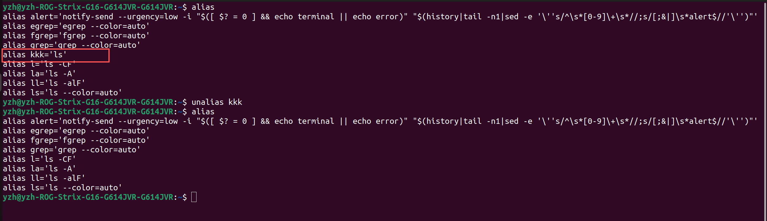 为了让别名永久生效,可以加到~/.bashrc里面。