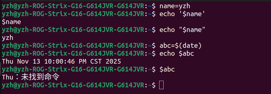 第五、如果把命令的结果给变量,需要用$()包着命令,注意这个变量里面存的是结果,而不是命令。