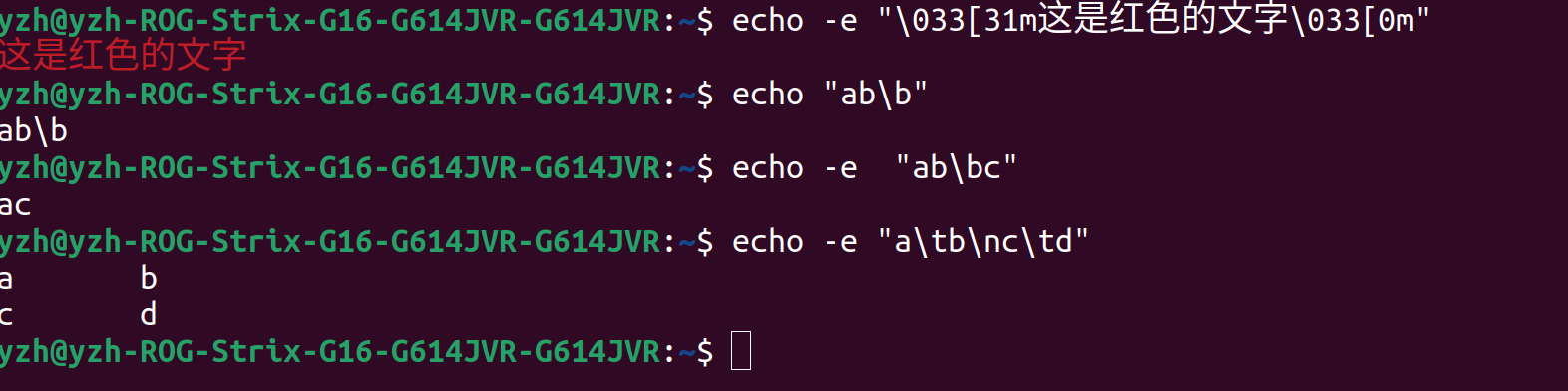 echo -e "\033[31m这是红色的文字\033[0m"# 绿色文字