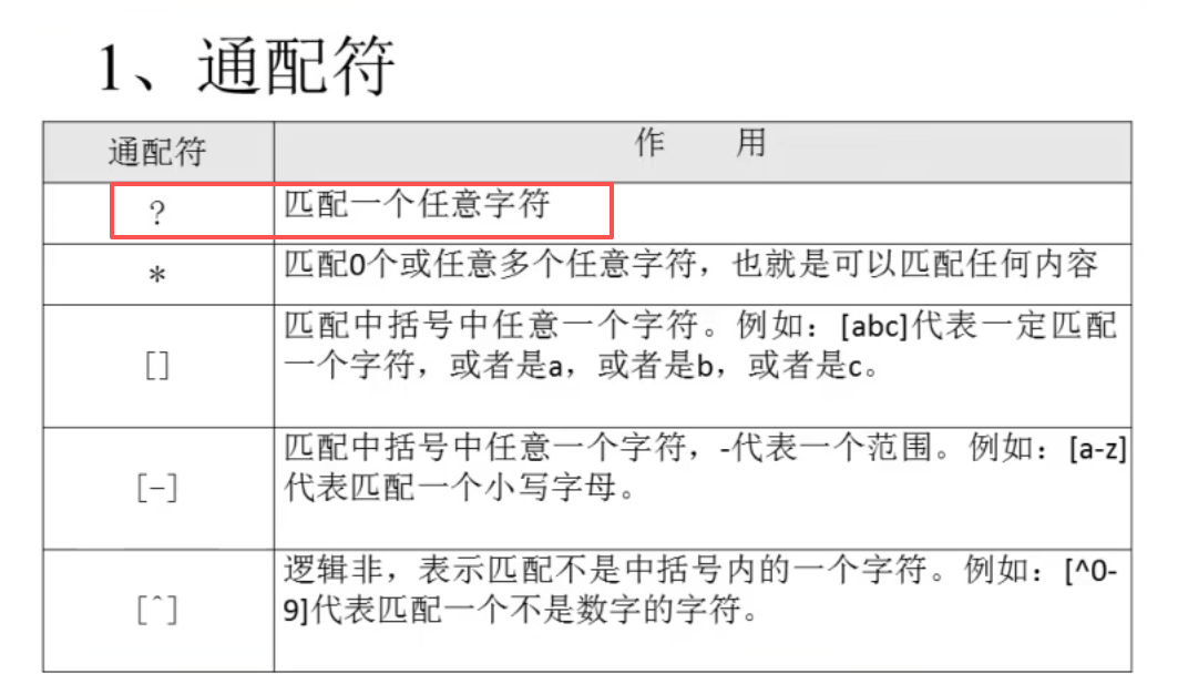 这个通配符与正则不同的是,这个?表示匹配一个任意字符,python的正则表示匹配0个或者1个。