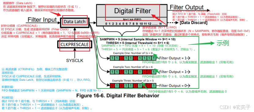注意,对于SAMPWIN、THRESH和CLKPRESCALE,数字滤波器使用的内部数字在所有情况下都是+1。实际上,samples=SAMPWIN+1,threshold=THRESH+1,prescale=CLKPRESCALE+1。