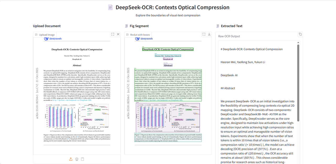 「DeepSeek-OCR:「视觉压缩」替代传统字符识别」现已上线 OpenBayes 公共教程板块,快来一键部署体验!